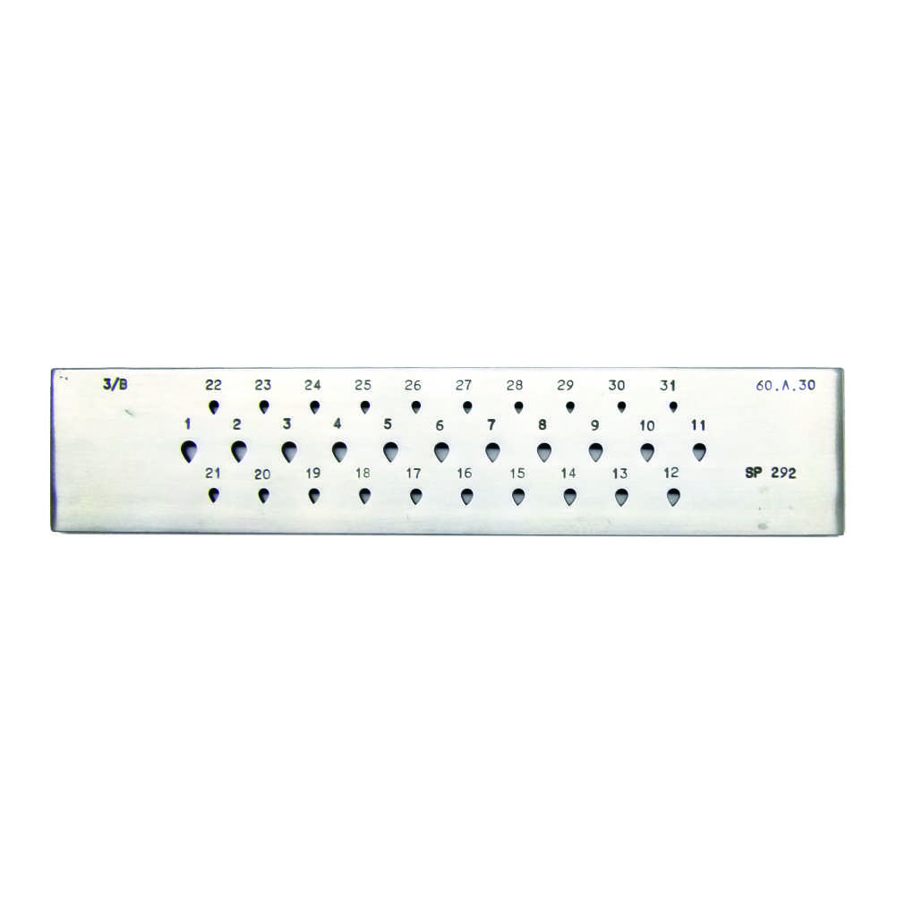 Precision made from quality hardened steel, this drawplate has 31 accurately machined holes ranging from 3mm to 6mm. Essential for reducing and reshaping wire using a drawbench or by securing the plate in a vice. Made in Italy.