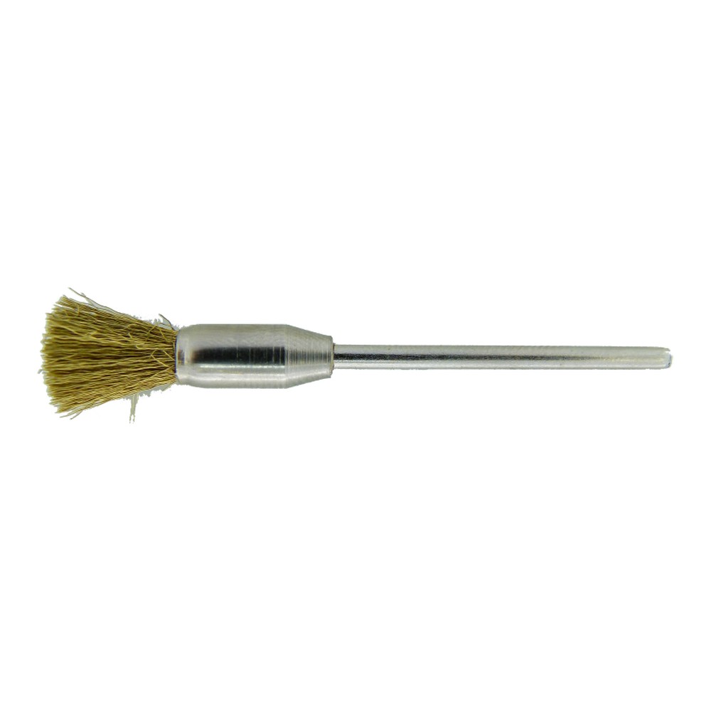 Perfect for hard to reach places, these brass pencil brushes can be used to produce a satin finish on yellow metals such as gold, bronze and brass. To avoid a brass residue being left on your work, use soap and water as a lubricant.